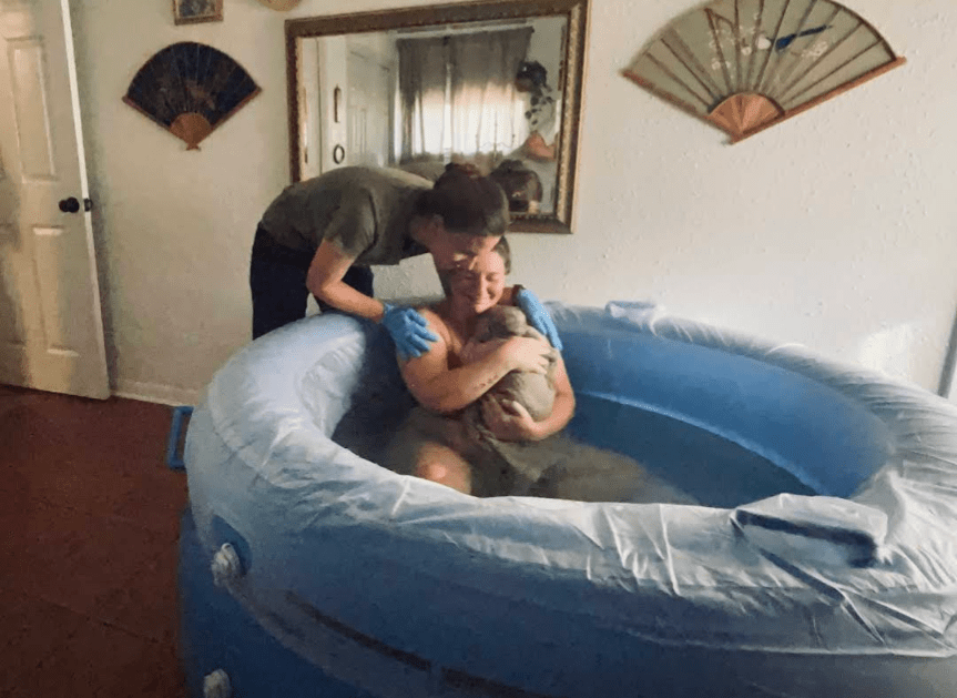 It’s quite simple! You’ll order my custom birth kit 34 weeks. If you’re planning a water birth with one of my inflatable tubs, there are a few additional items to include. The birth kit, along with a stack of towels, washcloths, and an extra set of sheets, covers everything you’ll need. Many people are surprised by how minimal the mess is during a home birth.